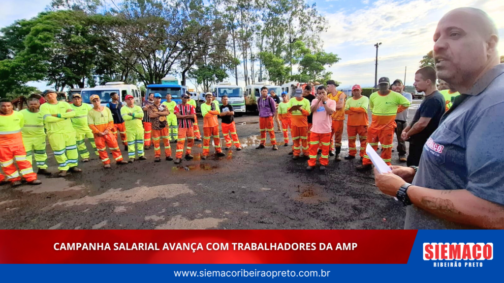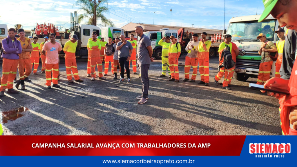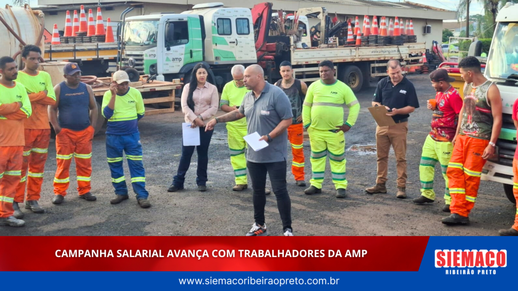 O Siemaco Ribeirão Preto esteve presente junto aos trabalhadores da AMP durante mais uma etapa da Campanha Salarial, reforçando o compromisso com a valorização da categoria.