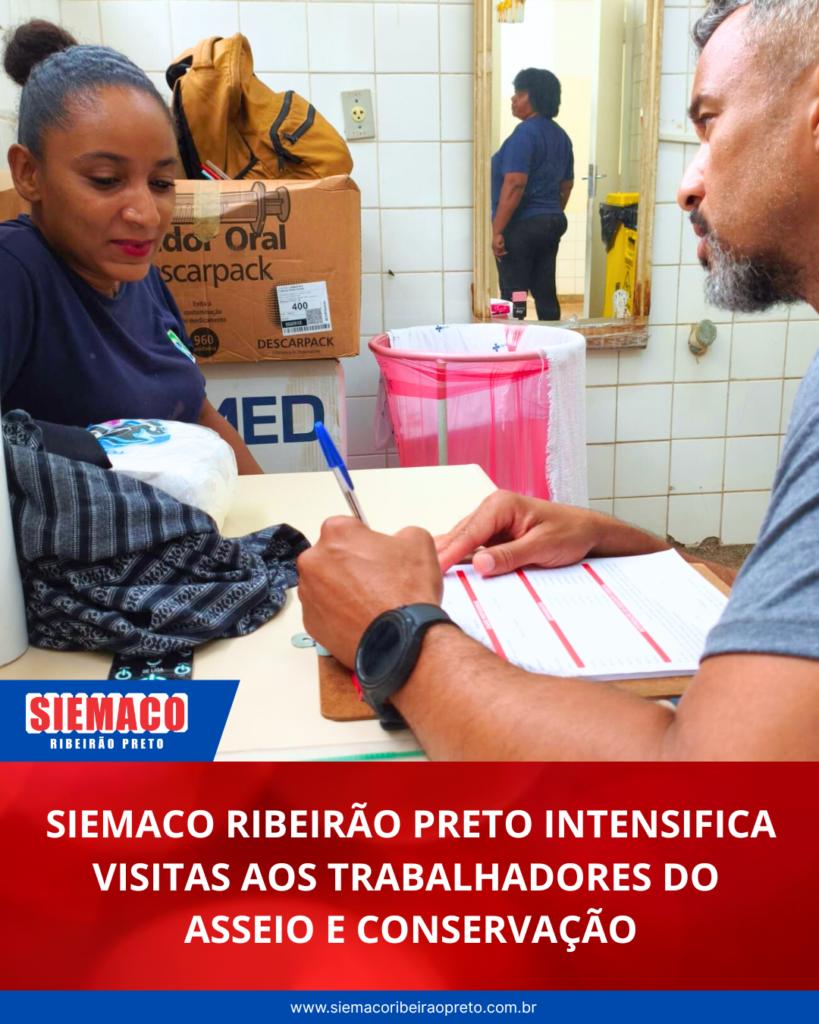 O Siemaco Ribeirão Preto, tem realizado visitas aos trabalhadores das empresas de Asseio e Conservação, como Works, VIVA, Inovação, Ximenes, Renove, Liderança, Orberq, Impacto e Interlimp.