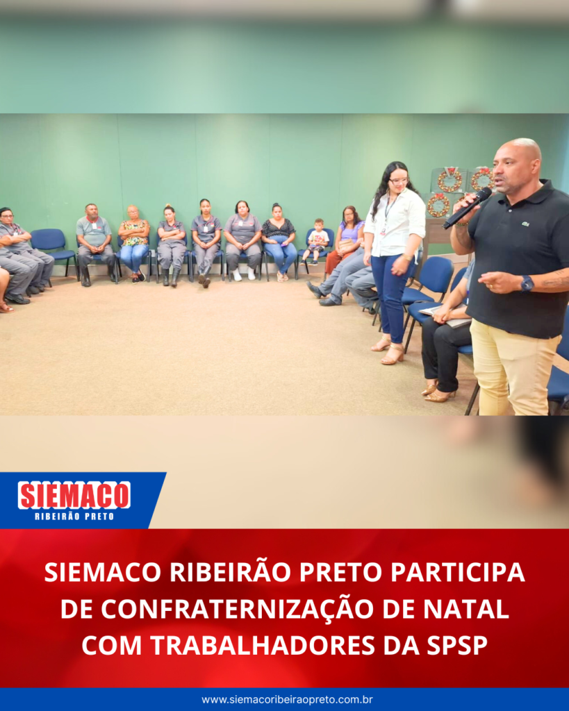 O SIEMACO Ribeirão Preto participou da festa de Natal com os trabalhadores da empresa SPSP, realizada no Colégio Liceu Albert Sabin. O momento foi marcado por integração, descontração e valorização da categoria.