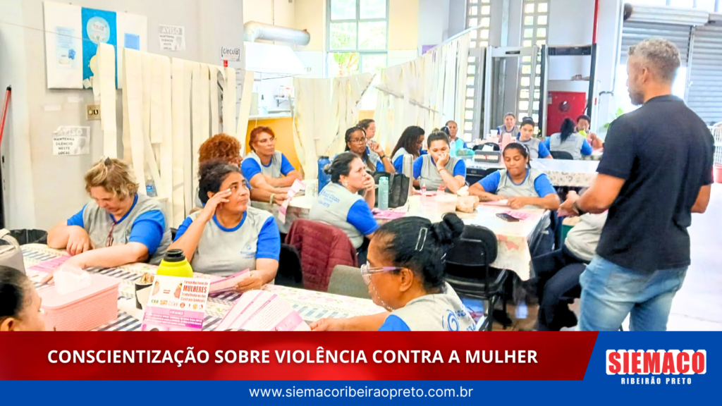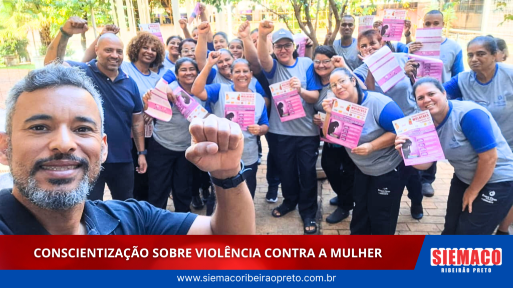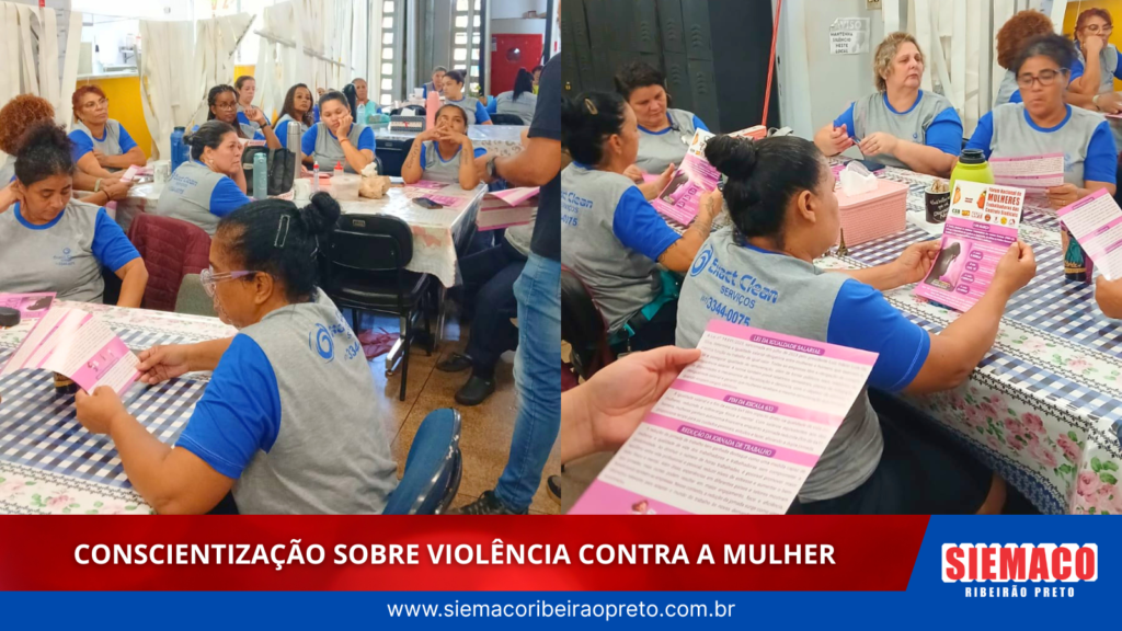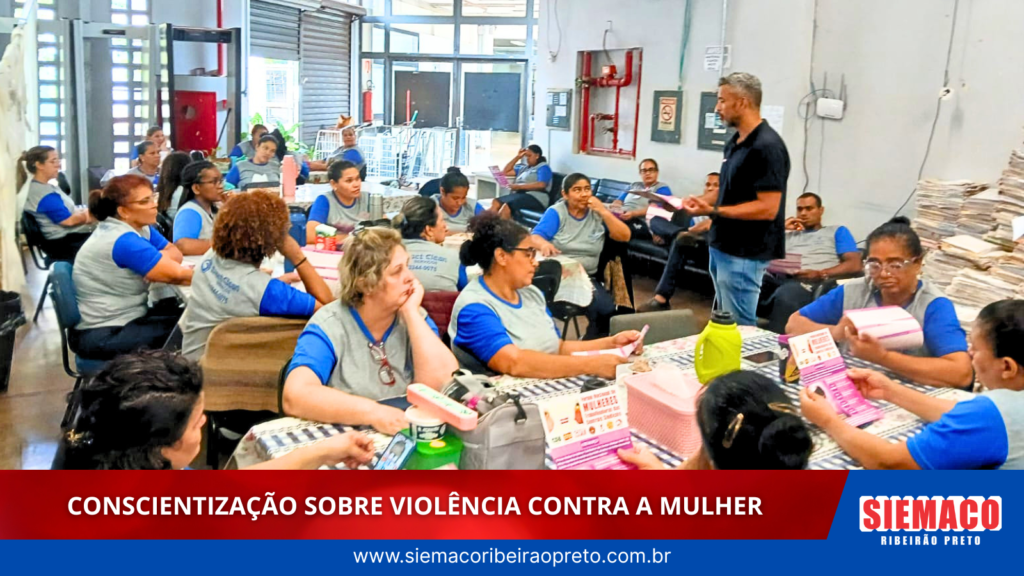 O SIEMACO Ribeirão Preto realizou uma ação de conscientização com trabalhadores da limpeza terceirizada que atuam no Fórum Criminal de Ribeirão Preto, com foco no enfrentamento à violência contra a mulher.